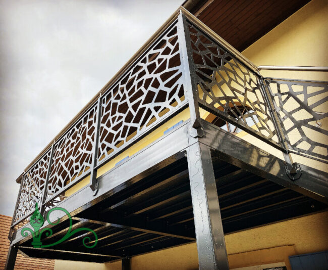Structure métallique, balcon et escalier, avec garde corps en découpe laser aluminium.Sur mesureEscalierBalconDécoupe laser